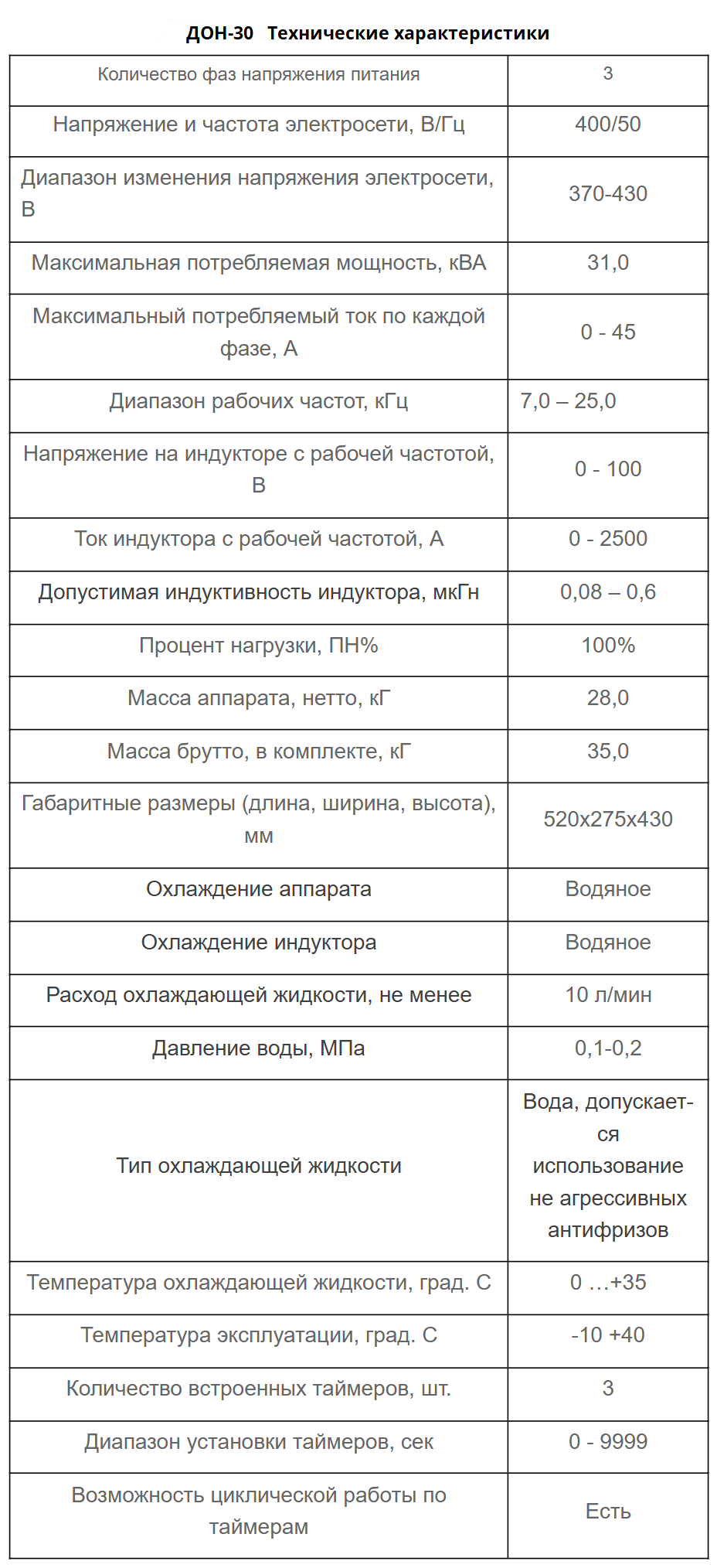 Важно:Индукционный нагреватель ДОН‑30 относится к категории